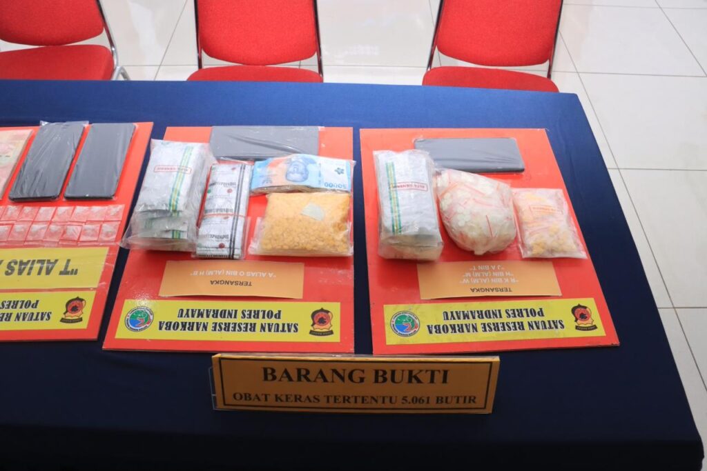 Dari hasil penindakan, polisi menyita barang bukti yang jumlahnya cukup besar, di antaranya sabu dengan berat total 128,54 gram, serta lebih dari 5.000 butir obat keras seperti tramadol, hexymer, dextro, dan dobel Y.