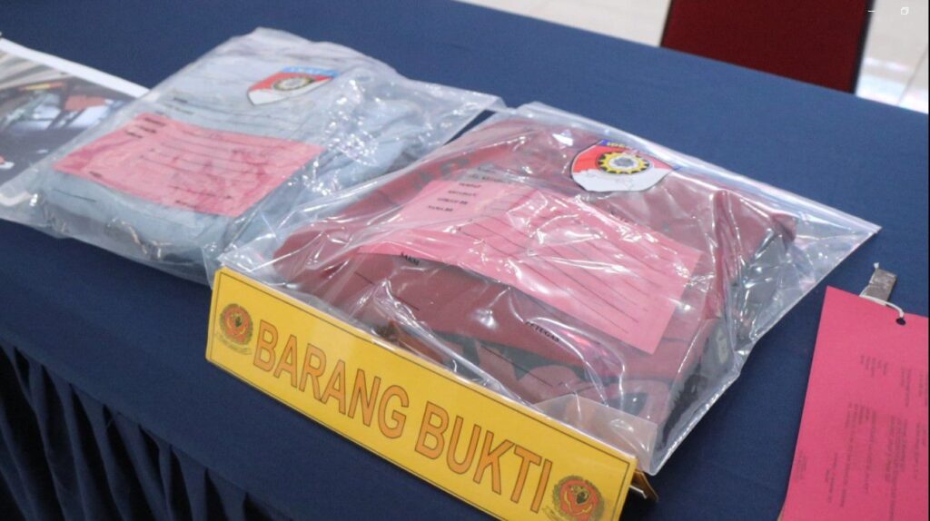 Sejumlah barang bukti berhasil diamankan, antara lain Satu unit sepeda motor Honda Vario warna rose gold, Satu buah plat besi berukuran 32 cm, Satu helm merk INK warna hitam, Satu hoodie warna merah-hitam bertuliskan SAMEXOY dan Satu celana panjang jeans warna biru muda